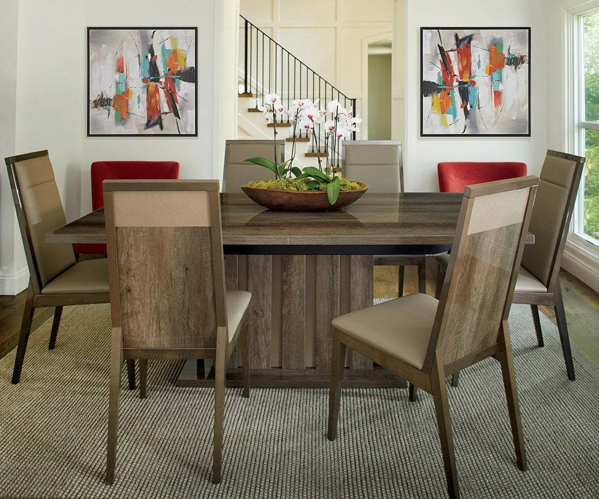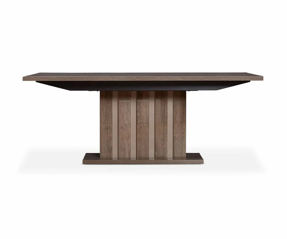 Made in Italy, the striking Akana Dining Table displays natural warmth from the striking wood grain pattern enhanced by the high gloss finish. Enjoy hosting a small crowd with the help of one leaf, which extends the table to comfortably seat ten. Sleek and handsome, this piece evokes true modern style in your dining space.