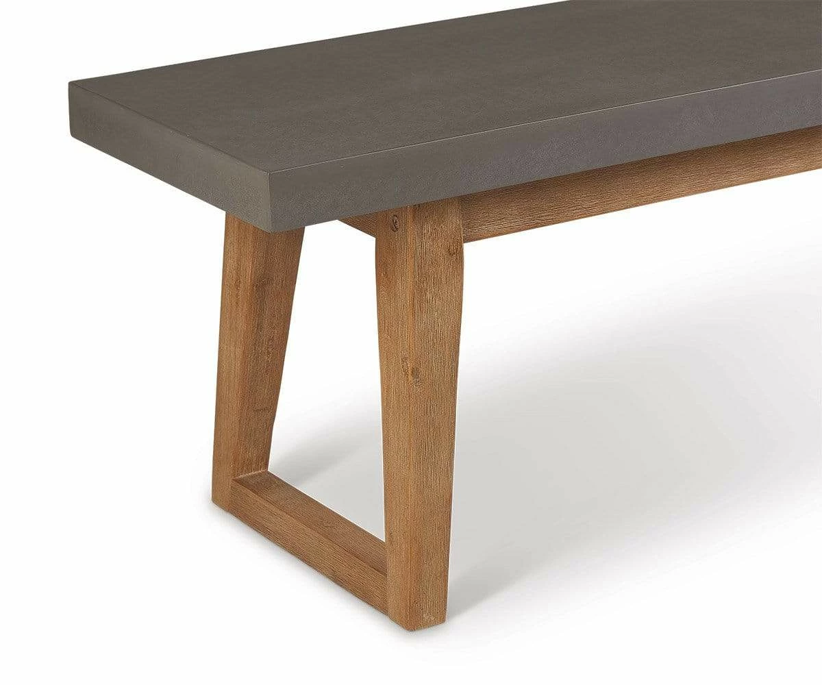 The elegant Atlas Dining Bench makes a smart addition to your dining set. With a solid acacia wood base and faux-cement composite tabletop, this piece provides durable yet lightweight performance.