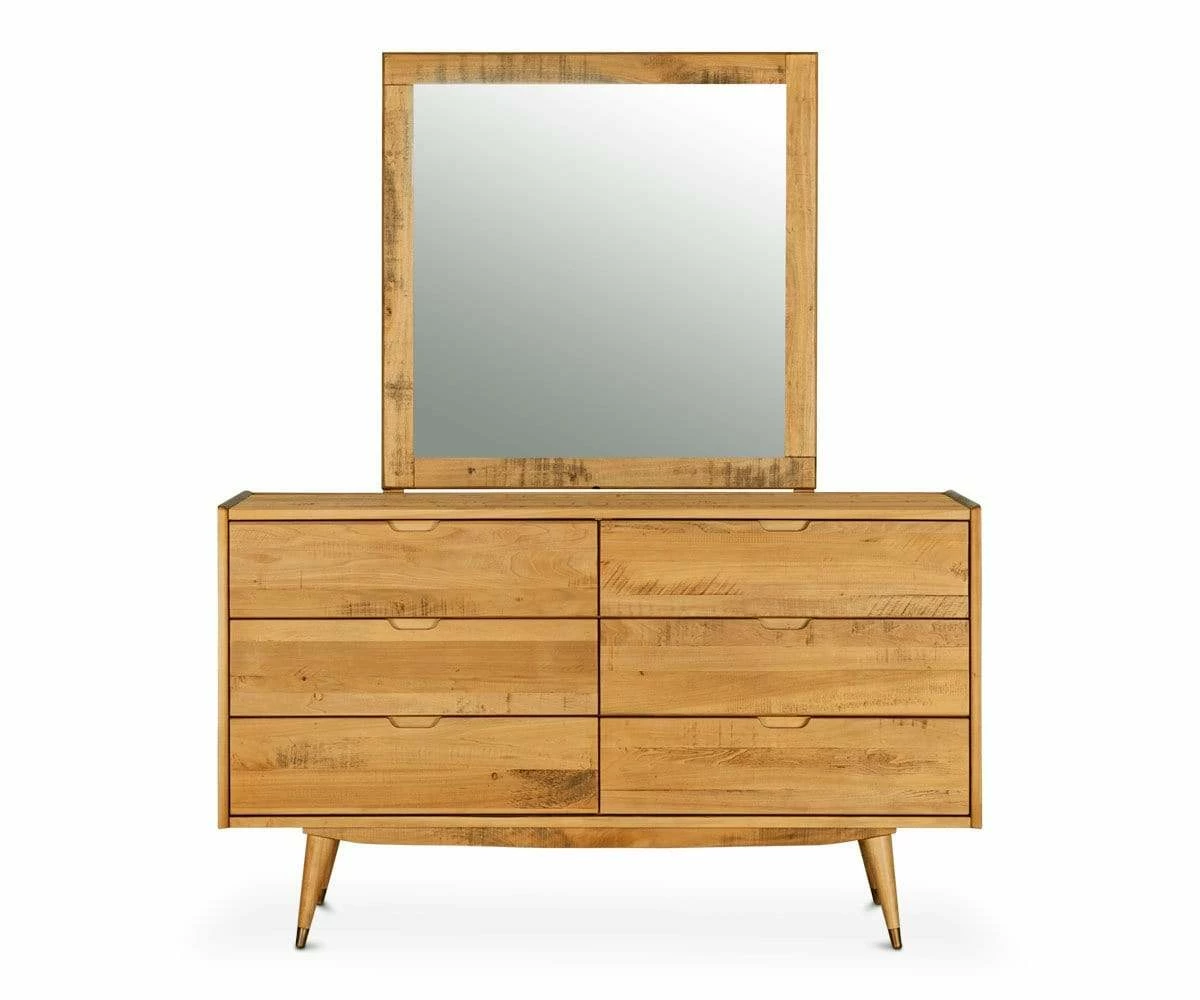 The square Bolig Wall Mirror is framed in solid American poplar with a distressed finish. Add light and rustic charm to your space with this piece that coordinates perfectly with the rest of the Bolig Collection. The rustic reclaimed look of this collection is achieved through an intentional distressing technique that applies burn and saw marks to the surface while retaining and highlighting natural characteristics in the wood. This technique results in a reclaimed driftwood appearance, which adds personality and a one-of-a-kind uniqueness to each piece.