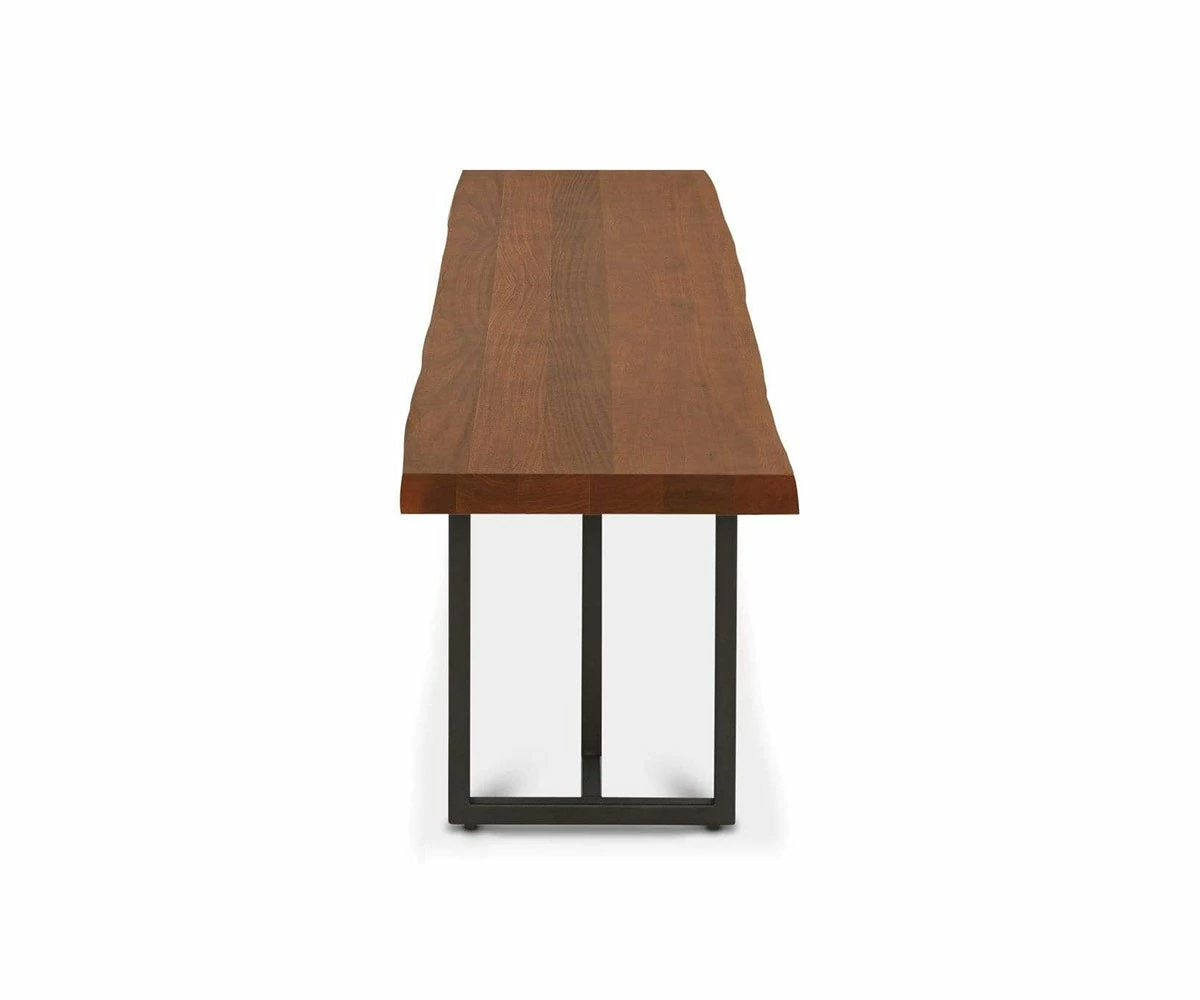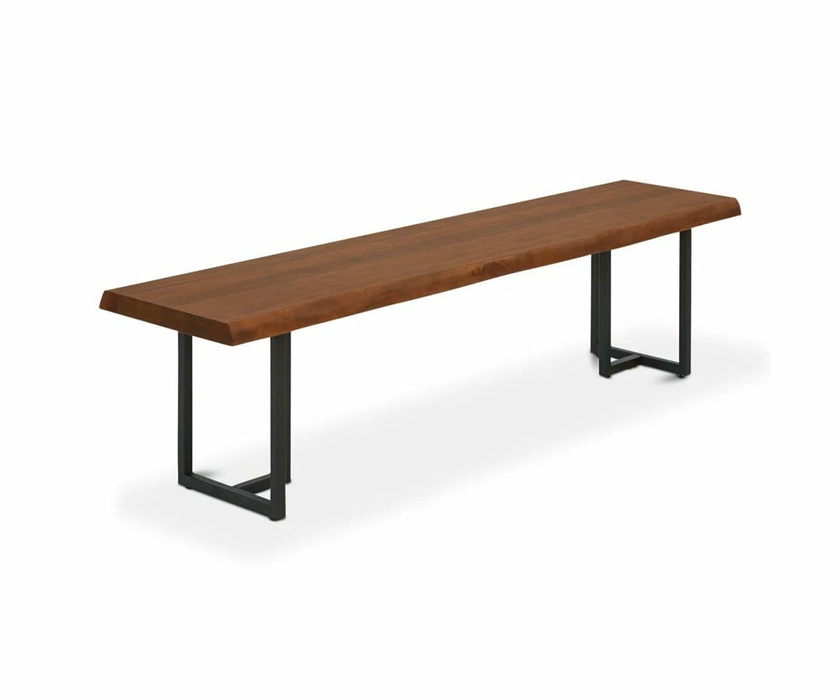 Rustic and modern design are beautifully blended in the Hasse Bench. The warm tones of the solid American poplar cut with a live edge sits atop the industrial style black metal legs. As sturdy as it is stunning, this seating solution makes space for more to gather at the dining table.