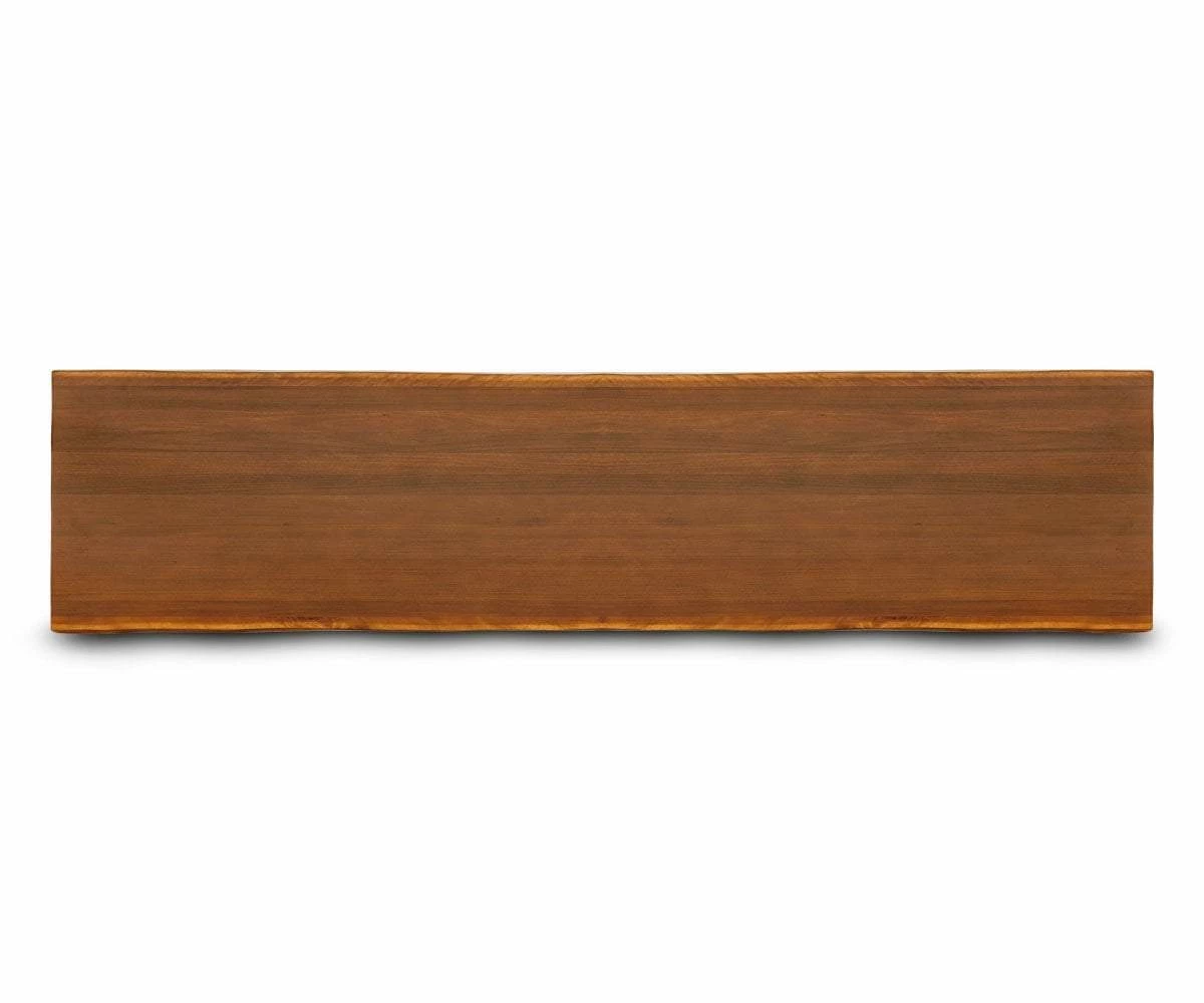 To enhance the rustic look of the wood, the surface of this piece is cut with a smoothed live edge, making each piece one-of-a-kind.