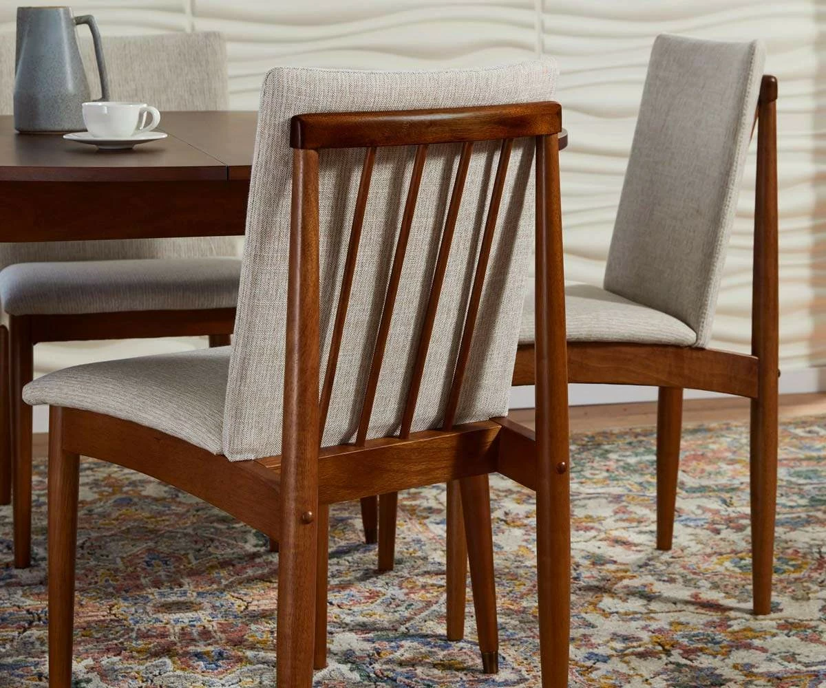 The new and improved Holfred Dining Chair is designed with celebration in mind. A new, reinforced construction makes this piece sturdier than ever before, with thicker cushioning to provide ample support and comfort. The wood is finished in a rich, timber brown stain for instant mid-century modern vibes, while the angle of the back detailing has a distinctive, Scandi-inspired sensibility.