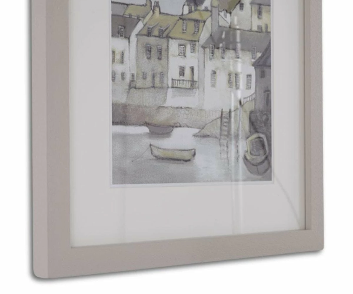 Admire the Journey Landscape II, and you step back in time to life in a charming Scandinavian seaside village. The neutral tones and soft lines of the cityscape add warmth to your decor, while look is completed with the creamy matte and wooden ivory frame.