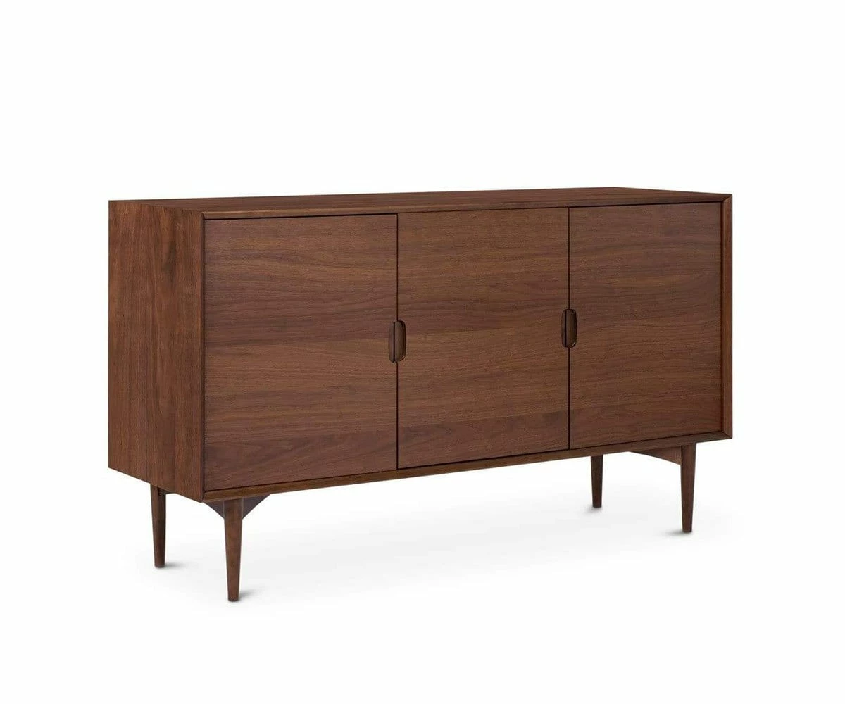 Create a warm Scandinavian look in your dining room with the Juneau Sideboard. The clean profile offers a light mid-century look with splayed tapered legs. Includes three doors and three adjustable shelves for countless storage options.