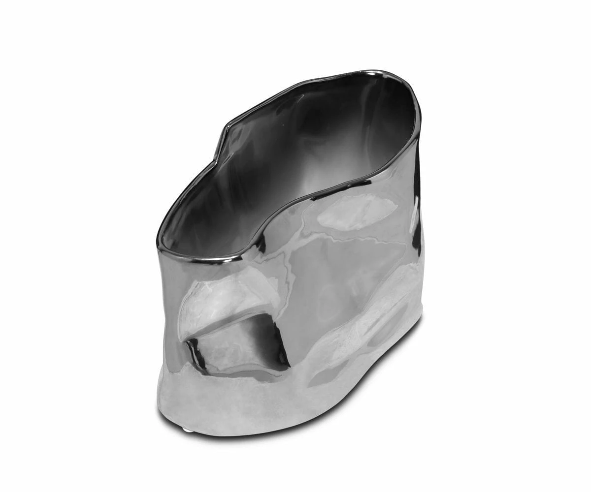 Create stunning contrast for your floral arrangements with the Klimat Vases. Crafted from ceramic with a metallic silver finish, they offer a molten metal aesthetic.