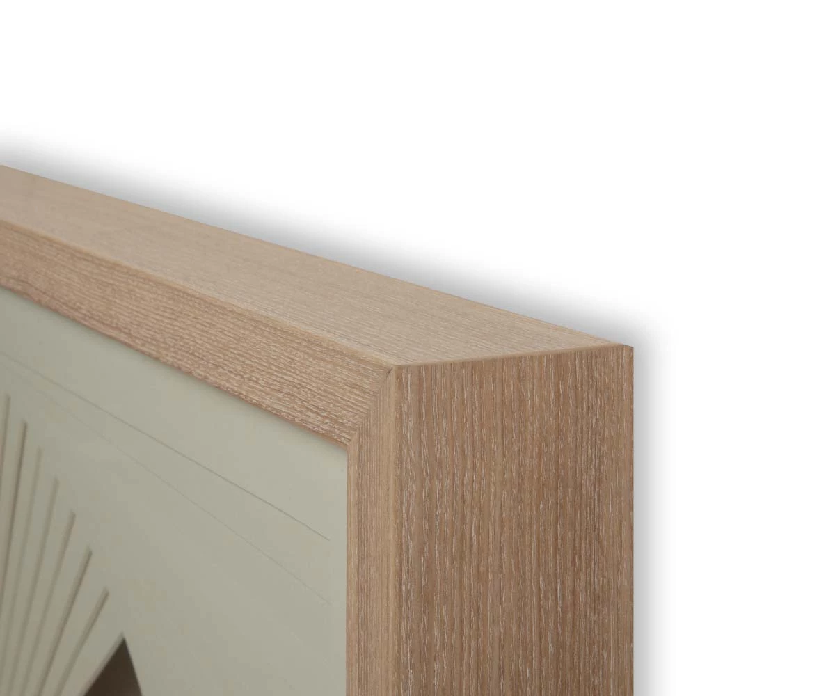 Layered Reflection Wall Art is a piece that showcases a seemingly uncomplicated compilation of paper. Layer upon layer of deliberately angled sheets create a modern, multidimensional work of art. The soothing hues of the cream-colored paper blend with the neutral tones of the wooden frame, leaving the viewer of this piece with a clear sense of the depth of true artistry. Layered Symmetry and Layered Tranquility each sold separately.