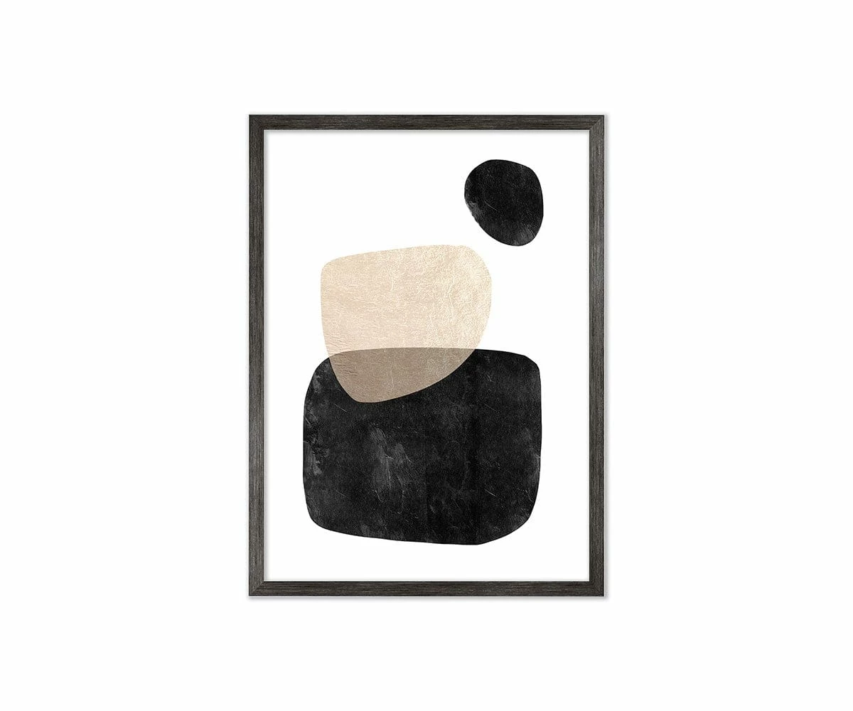 Maintaining Momentum evokes thoughts of water-smoothed pebbles or carefully-laid cobblestones. Featuring a combination of black and white shapes, this black-framed piece of wall art brings a natural, serene presence to any room, as well as a welcome sense of minimalism.