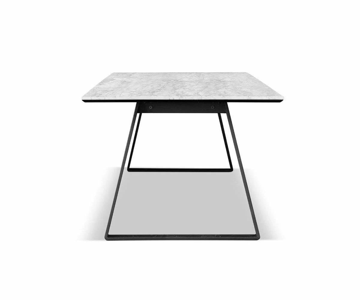 From casual to formal, the Oken Dining Table exudes modern cool with a minimalist feel. Featuring a white marble top and black metal sleigh-style legs, you can easily dress it up with your finest dinnerware or make it easy with your everyday. The overall look of this table blends effortlessly into any space.
