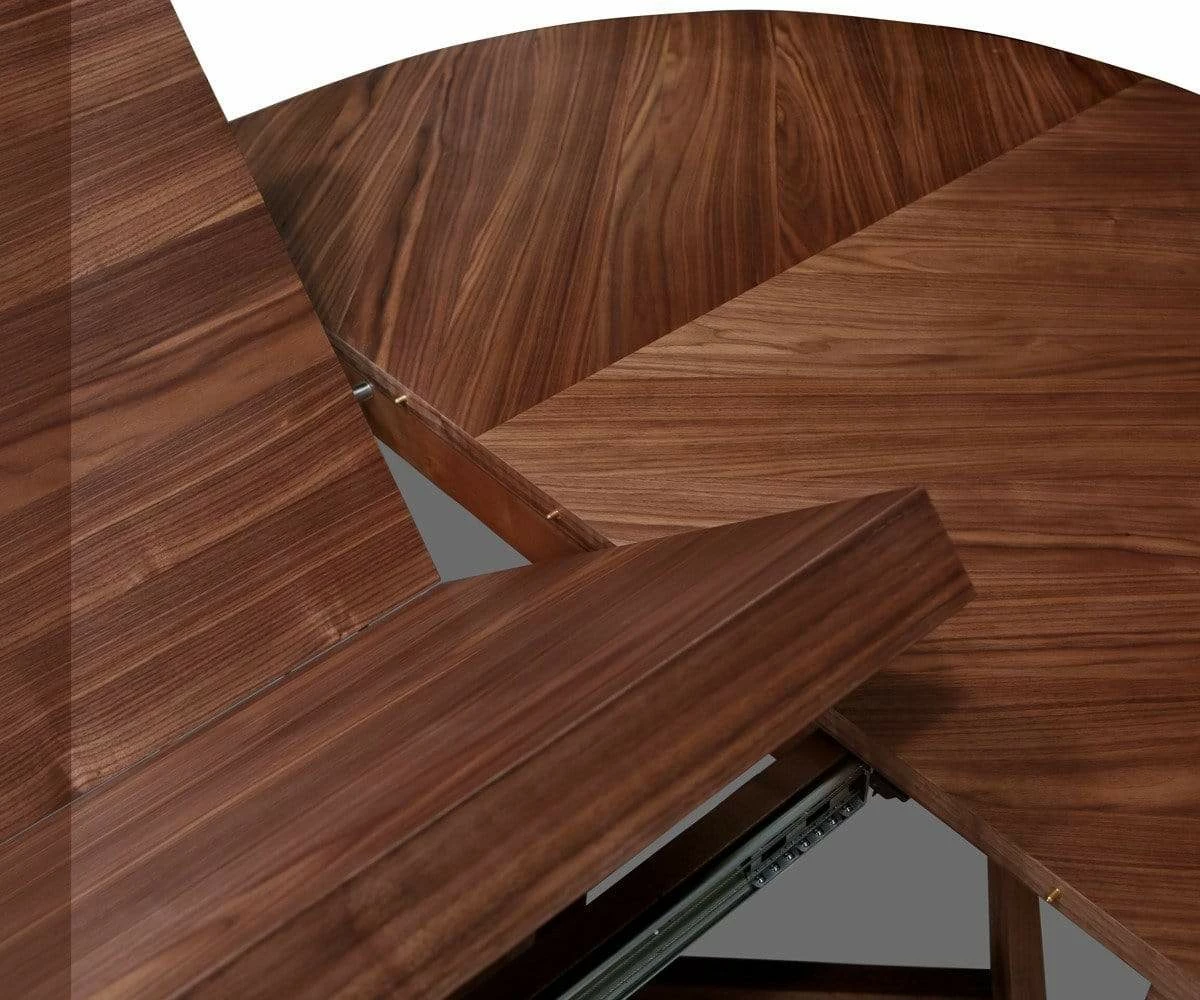 Set the stage for lively and connective family dinners with the Oliver Oval Extension Dining Table. The angular base and oval tabletop borrow from mid-century modern design for a classic feel. Natural walnut veneers pair well with most color schemes. Make room for more guests or bigger spreads by adding the extension leaf.