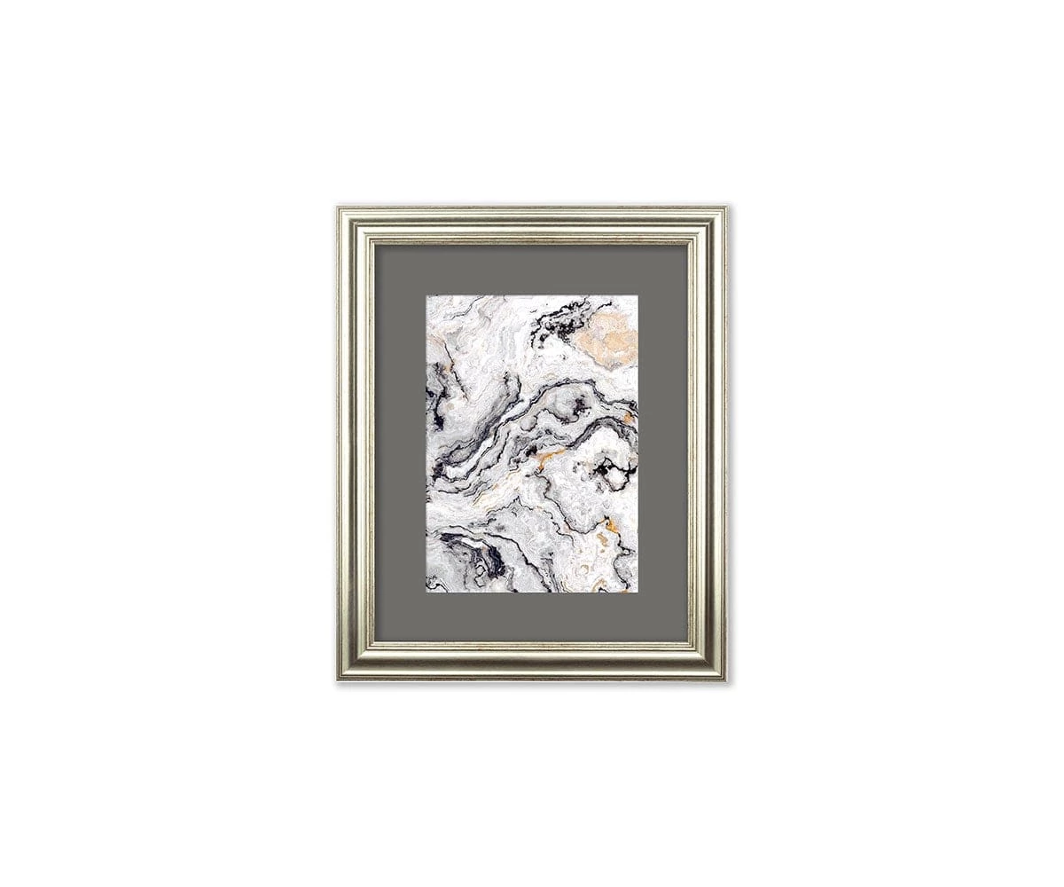 The swooping lines of the framed Silvery Surrealism II print are both abstract and opulent. Reminiscent of marble with its ebbing and flowing striations, this piece brings a sense of elegant minimalism to any room in which it is displayed. Hang this piece by itself for a solo statement, or pair it with the framed Silvery Surrealism II print to complete the look.