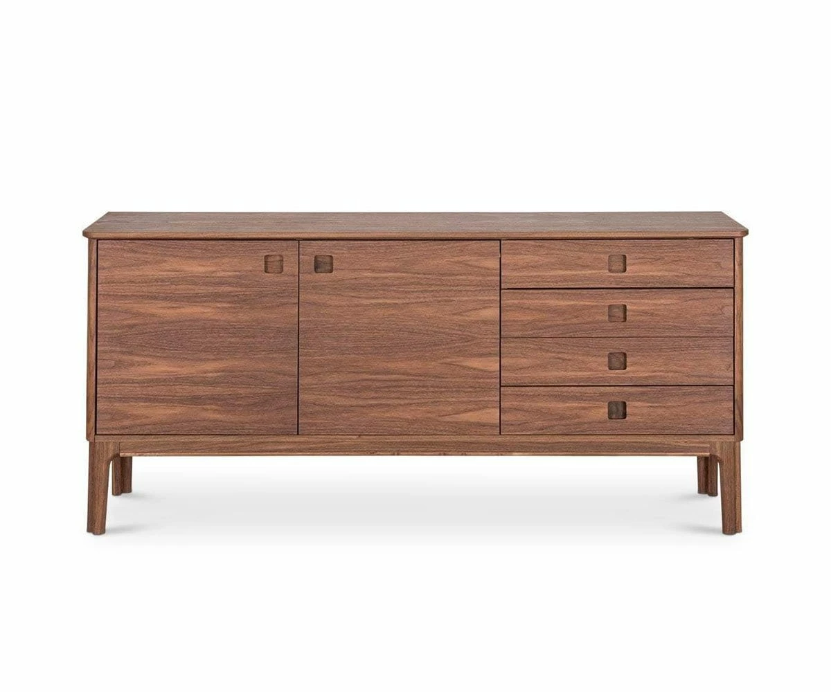 A retro-inspired feel meets a modern twist in the Sundby Sideboard. This piece is a stylish staple for your dining space; four drawers, two doors and five cubbies with adjustable shelving offer ample space for all your dining needs. This piece will be a welcomed accessory to your finest dinner parties.