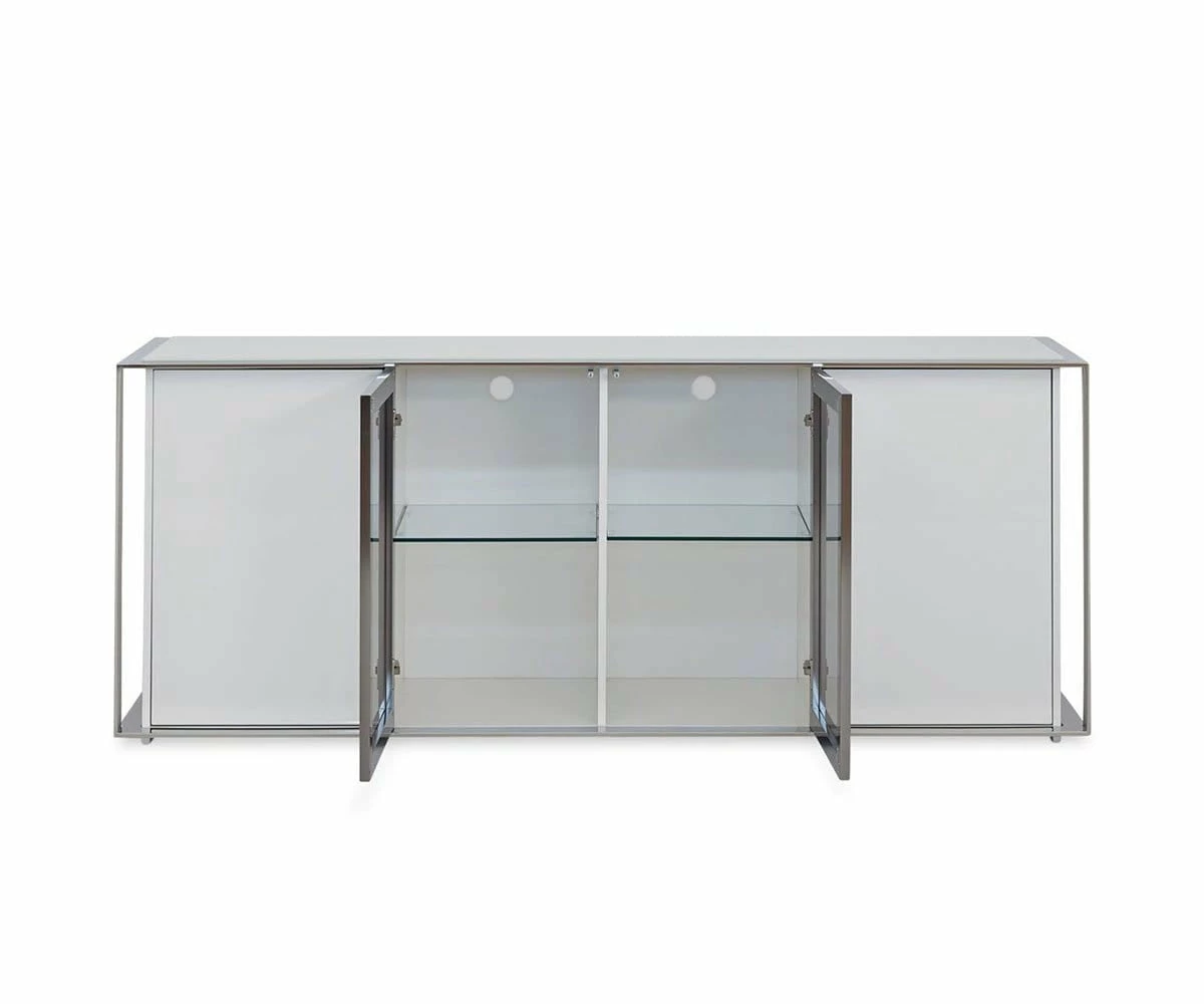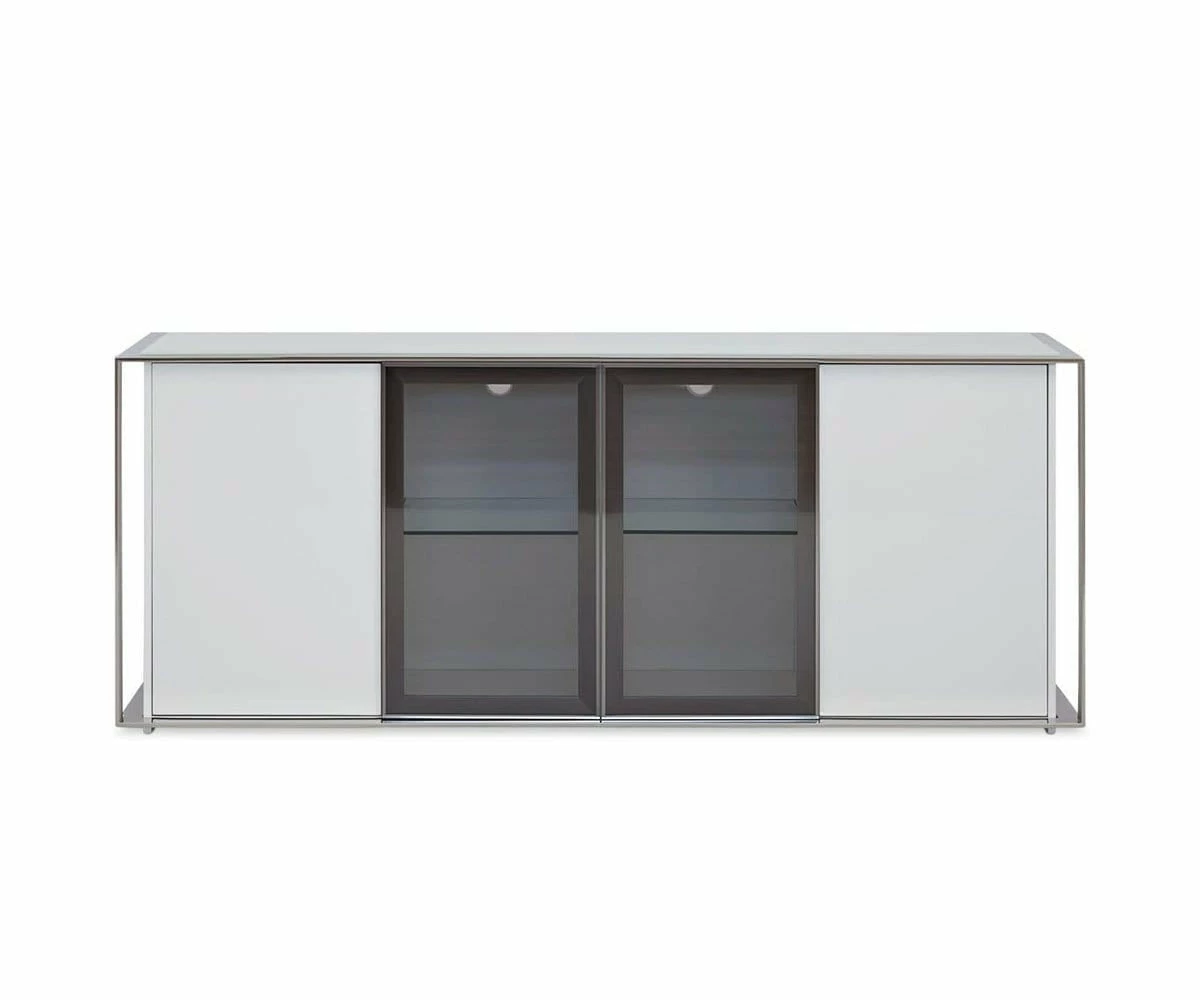 The wood and glass elements of the Svante Sideboard create a visually appealing contrast, lending to the masculine elegance of this addition to your dining area. Its impressive size and smart design provide ample storage. Hide away those items you want out of sight and proudly display select dinnerware, stemware or other accessories behind the tinted glass doors.