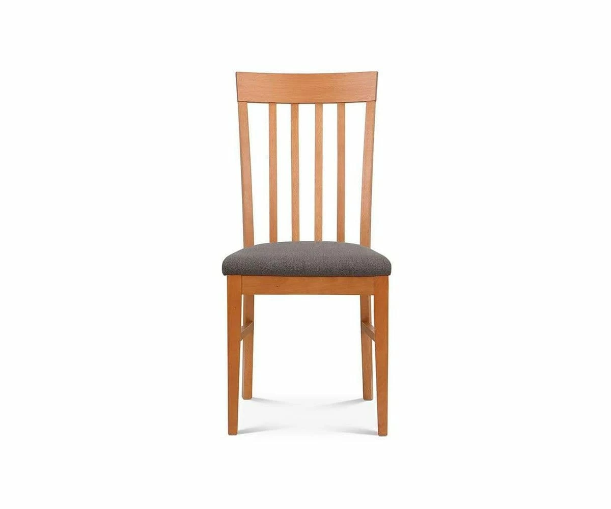 Simplicity reigns supreme with the Vackra Dining Chair. Clean lines produce an air of modern design with distinctly traditional roots. The high curved backrest offers comfortable support and is slatted for breathability. Fine upholstery complements the warm wood tones of the finish on the solid beech wood frame. Pair it with farmhouse-style tables for a cohesive look, or pedestal tables for an eclectic feel.